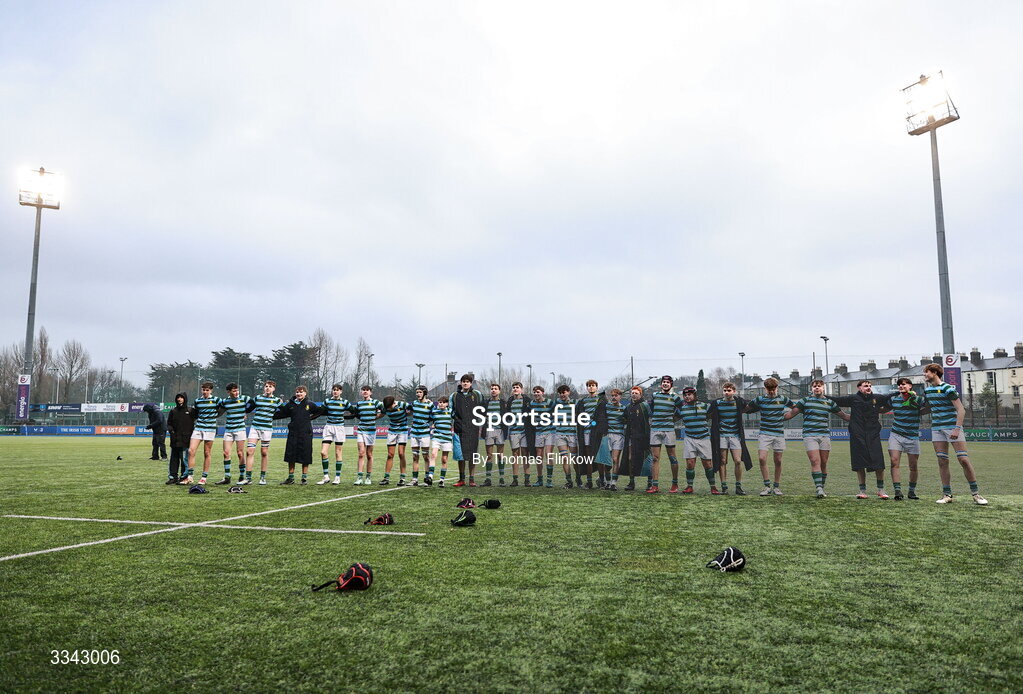 3 February 2026; St Gerard's School players after the Bank of Ireland Leinster Rugby Boys Schools Junior Cup First Round match between CUS and St Gerard's School at Energia Park in Dublin. Photo by Thomas Flinkow/Sportsfile