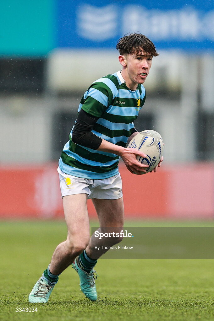 3 February 2026; Milees MacGreevy of St Gerard's School during the Bank of Ireland Leinster Rugby Boys Schools Junior Cup First Round match between CUS and St Gerard's School at Energia Park in Dublin. Photo by Thomas Flinkow/Sportsfile