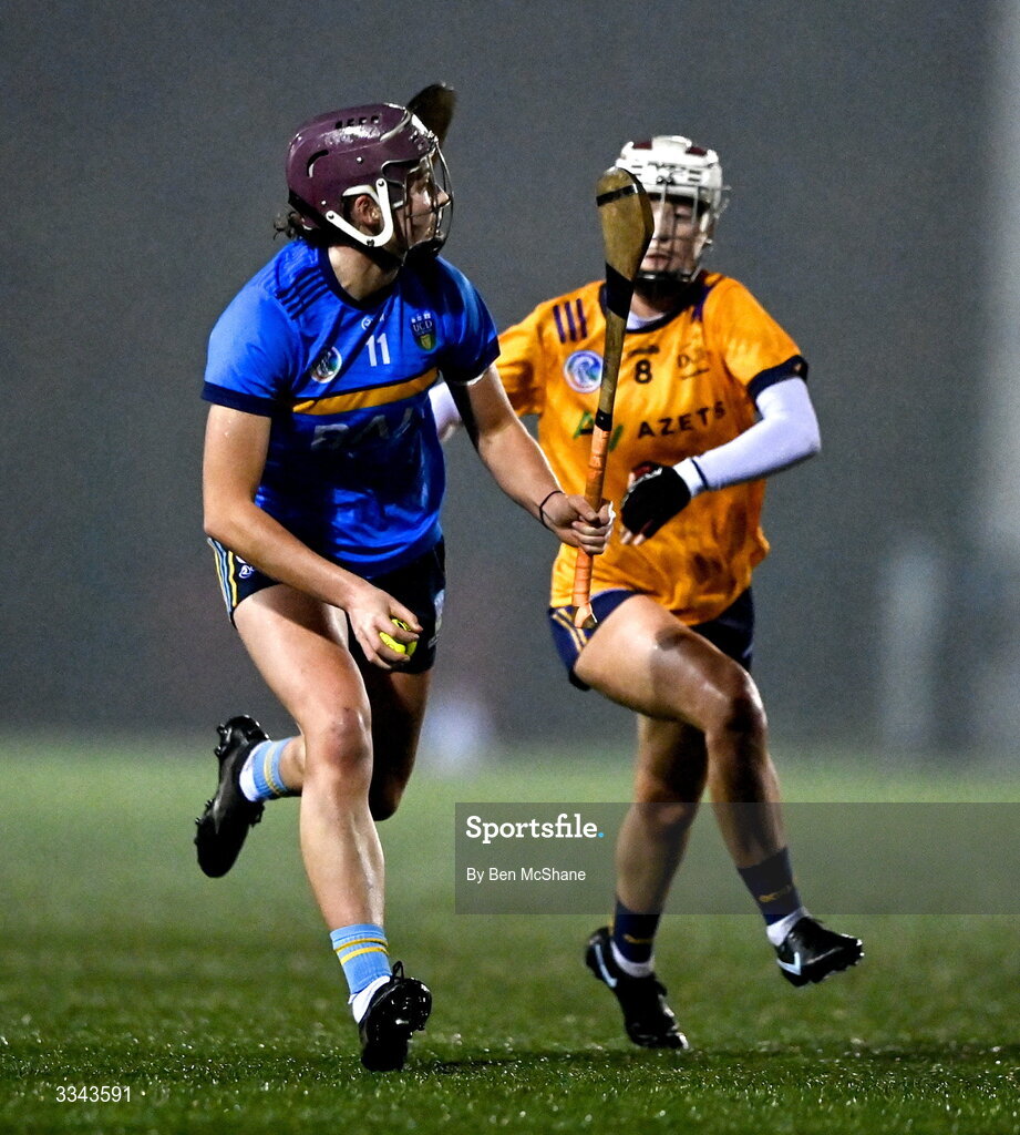 3 February 2026; Sibéal Cherry of University College Dublin in action against Keara Ryan of DCU Dóchas Éireann during the Ashbourne Cup semi-final match between UCD and DCU at the DCU Sportsground in Dublin. Photo by Ben McShane/Sportsfile