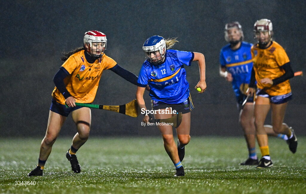 3 February 2026; Ciara Curtin of University College Dublin in action against Aoife Kenny of DCU Dóchas Éireann during the Ashbourne Cup semi-final match between UCD and DCU at the DCU Sportsground in Dublin. Photo by Ben McShane/Sportsfile