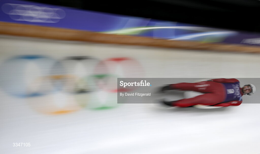 4 February 2026; Kristers Aparjods of Latvia during the Men's Luge training on day minus two of the Milano Cortina 2026 Winter Olympics at the Olympic sliding centre in Cortina, Italy. Photo by David Fitzgerald/Sportsfile