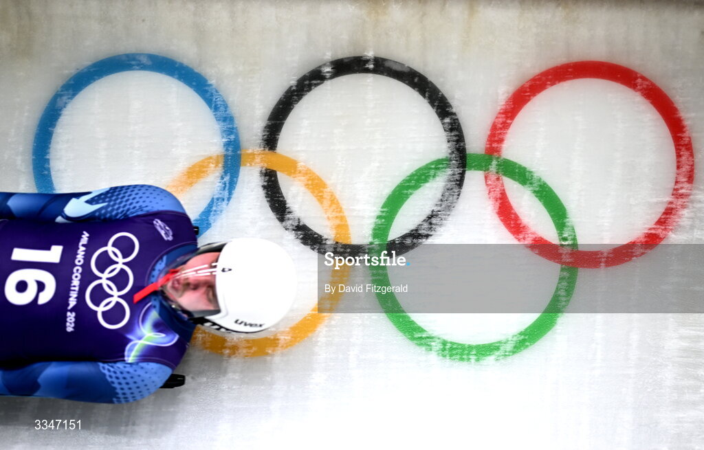4 February 2026; Pavel Repilov of Individual Neutral Athletes during the Men's Luge training on day minus two of the Milano Cortina 2026 Winter Olympics at the Olympic sliding centre in Cortina, Italy. Photo by David Fitzgerald/Sportsfile