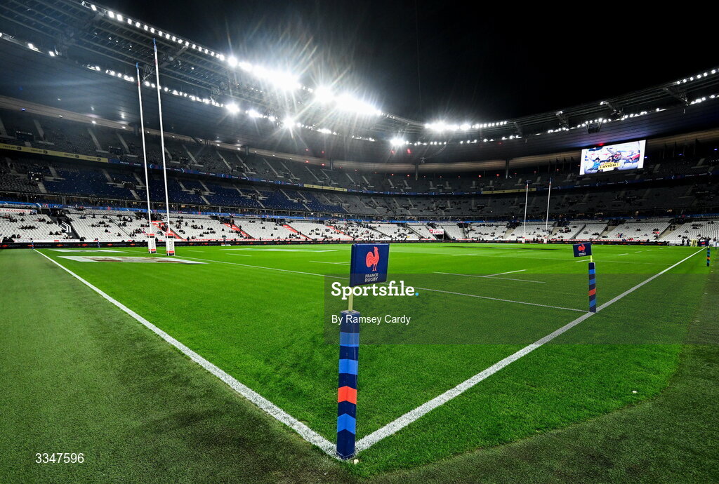 5 February 2026; A general view of a corner flag before the Guinness 6 Nations Rugby Championship match between France and Ireland at Stade de France in Paris, France. Photo by Ramsey Cardy/Sportsfile