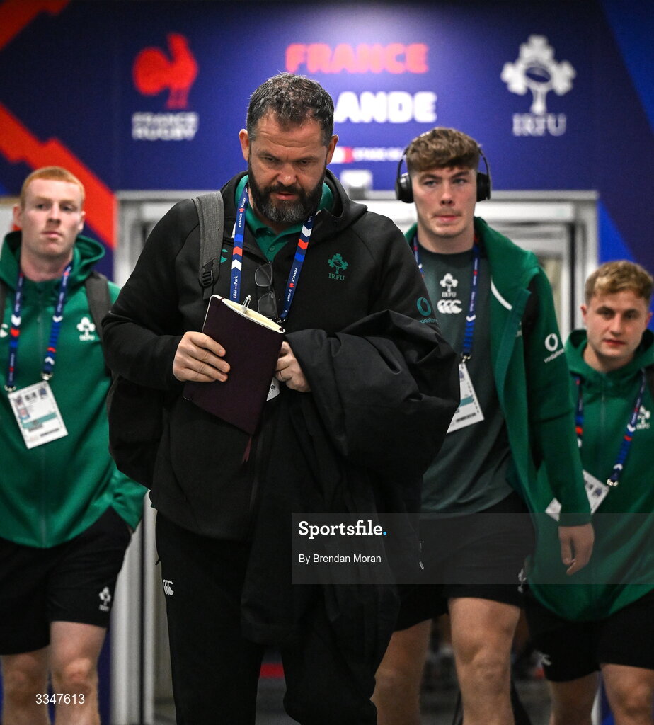 5 February 2026; Ireland head coach Andy Farrell arrives before the Guinness 6 Nations Rugby Championship match between France and Ireland at Stade de France in Paris, France. Photo by Brendan Moran/Sportsfile