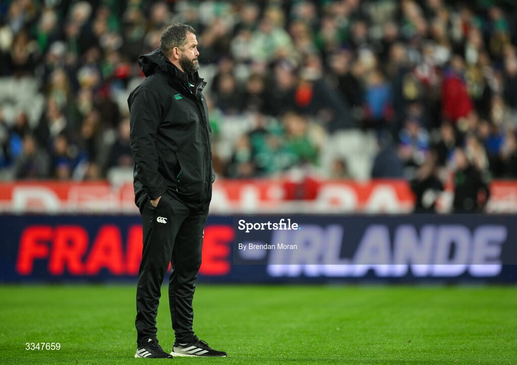 5 February 2026; Ireland head coach Andy Farrell before the Guinness 6 Nations Rugby Championship match between France and Ireland at Stade de France in Paris, France. Photo by Brendan Moran/Sportsfile