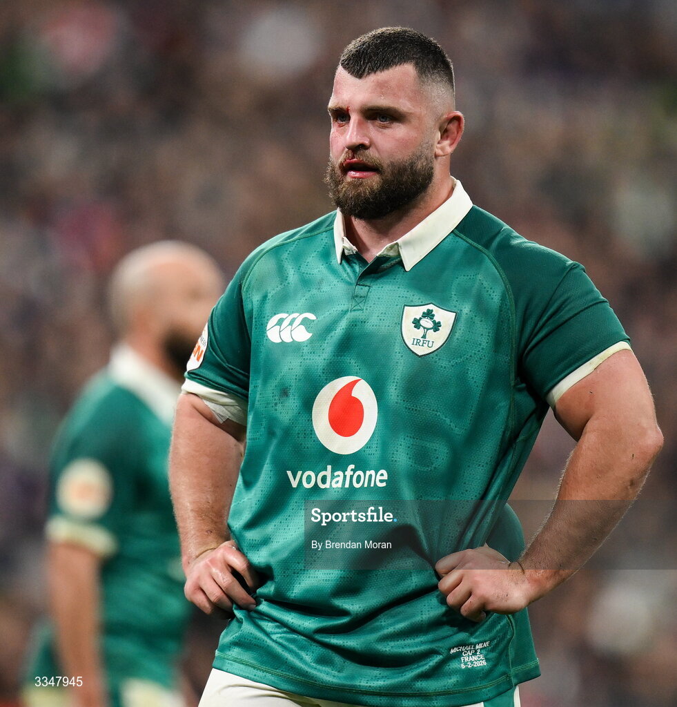 5 February 2026; Michael Milne of Ireland during the Guinness 6 Nations Rugby Championship match between France and Ireland at Stade de France in Paris, France. Photo by Brendan Moran/Sportsfile
