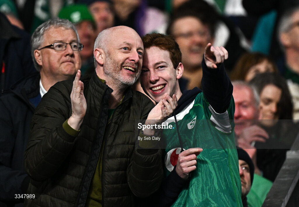 5 February 2026; Ireland supporters during the Guinness 6 Nations Rugby Championship match between France and Ireland at Stade de France in Paris, France. Photo by Seb Daly/Sportsfile