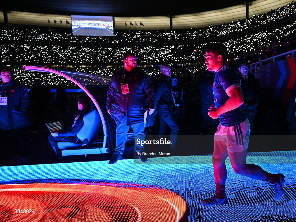 5 February 2026; Antoine Dupont of France runs out for the start of the second half of the Guinness 6 Nations Rugby Championship match between France and Ireland at Stade de France in Paris, France. Photo by Brendan Moran/Sportsfile
