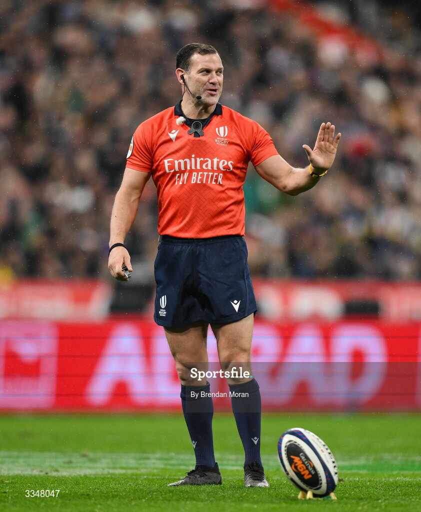 5 February 2026; Referee Karl Dickson during the Guinness 6 Nations Rugby Championship match between France and Ireland at Stade de France in Paris, France. Photo by Brendan Moran/Sportsfile