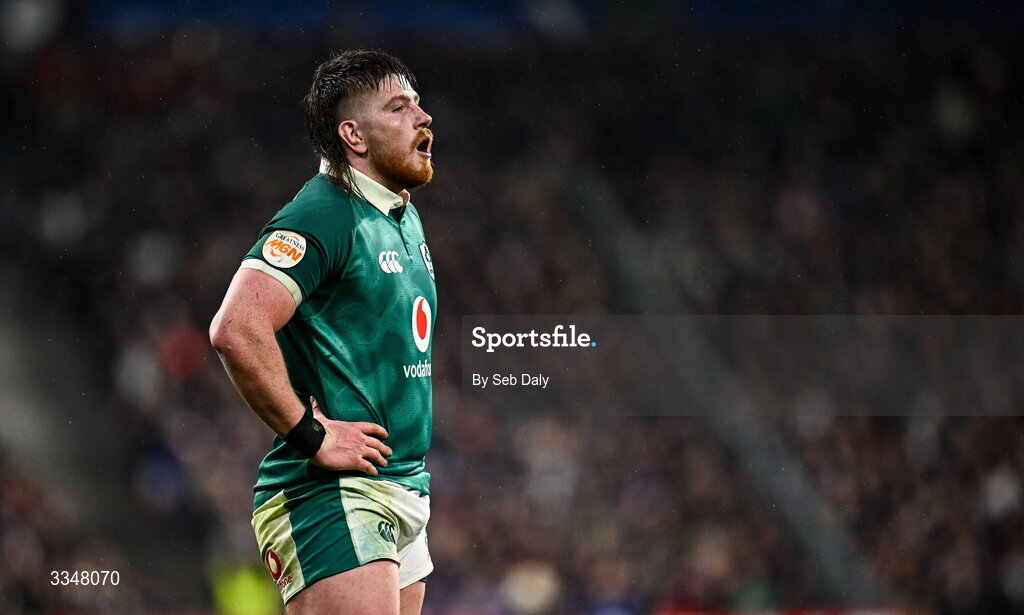5 February 2026; Joe McCarthy of Ireland during the Guinness 6 Nations Rugby Championship match between France and Ireland at Stade de France in Paris, France. Photo by Seb Daly/Sportsfile