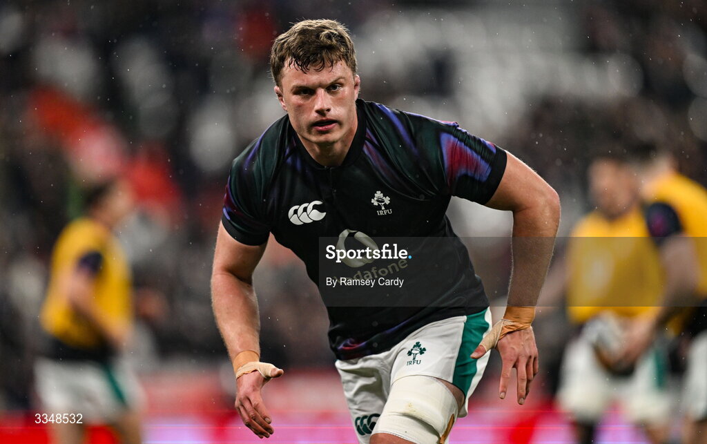 5 February 2026; Cian Prendergast of Ireland before the Guinness 6 Nations Rugby Championship match between France and Ireland at Stade de France in Paris, France. Photo by Ramsey Cardy/Sportsfile