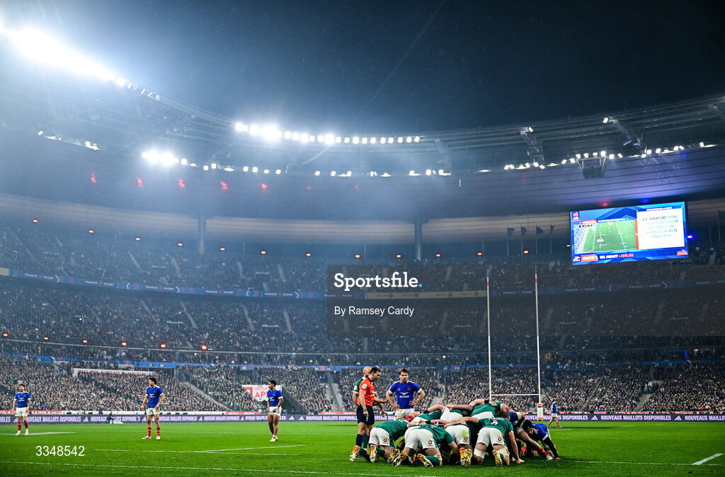 5 February 2026; A general view of a scrum during the Guinness 6 Nations Rugby Championship match between France and Ireland at Stade de France in Paris, France. Photo by Ramsey Cardy/Sportsfile