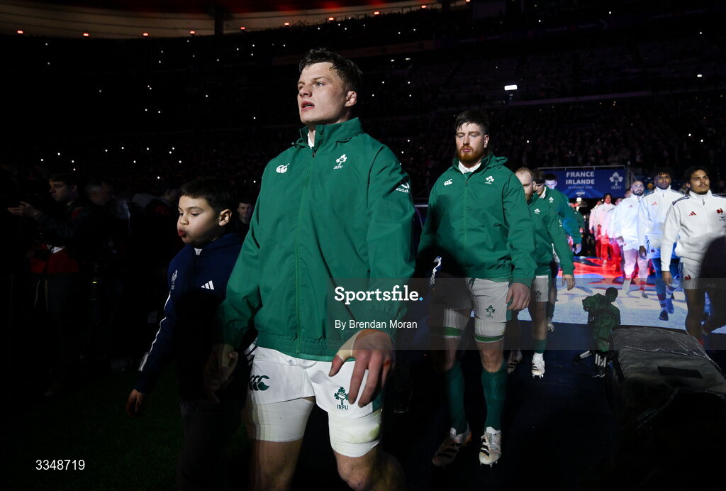5 February 2026; /co walks onto the pitch before the Guinness 6 Nations Rugby Championship match between France and Ireland at Stade de France in Paris, France. Photo by Brendan Moran/Sportsfile