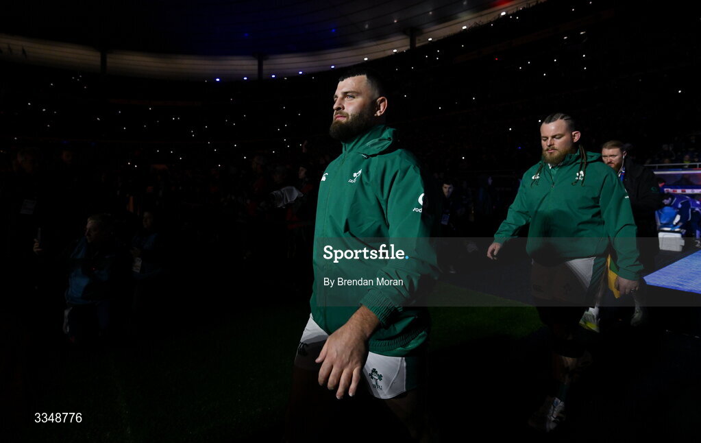 5 February 2026; Michael Milne of Ireland walks onto the pitch before the Guinness 6 Nations Rugby Championship match between France and Ireland at Stade de France in Paris, France. Photo by Brendan Moran/Sportsfile
