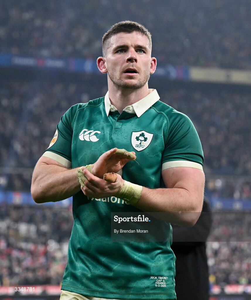 5 February 2026; Nick Timoney of Ireland after the Guinness 6 Nations Rugby Championship match between France and Ireland at Stade de France in Paris, France. Photo by Brendan Moran/Sportsfile