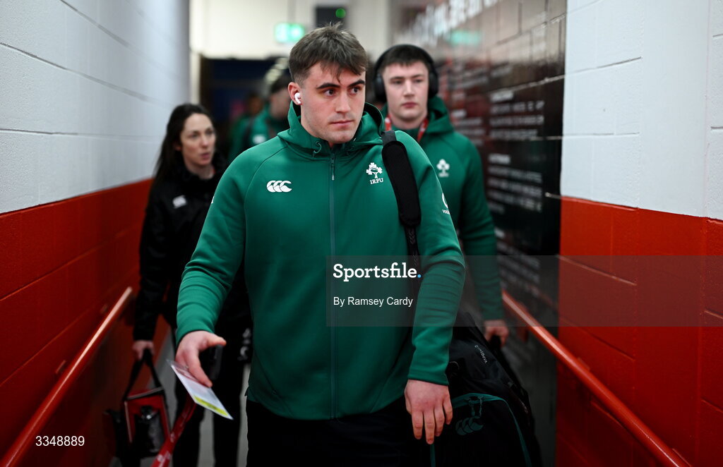 6 February 2026; Brian Gleeson of Ireland XV arrives before the representative fixture rugby union match between Ireland XV and England A at Thomond Park in Limerick. Photo by Ramsey Cardy/Sportsfile