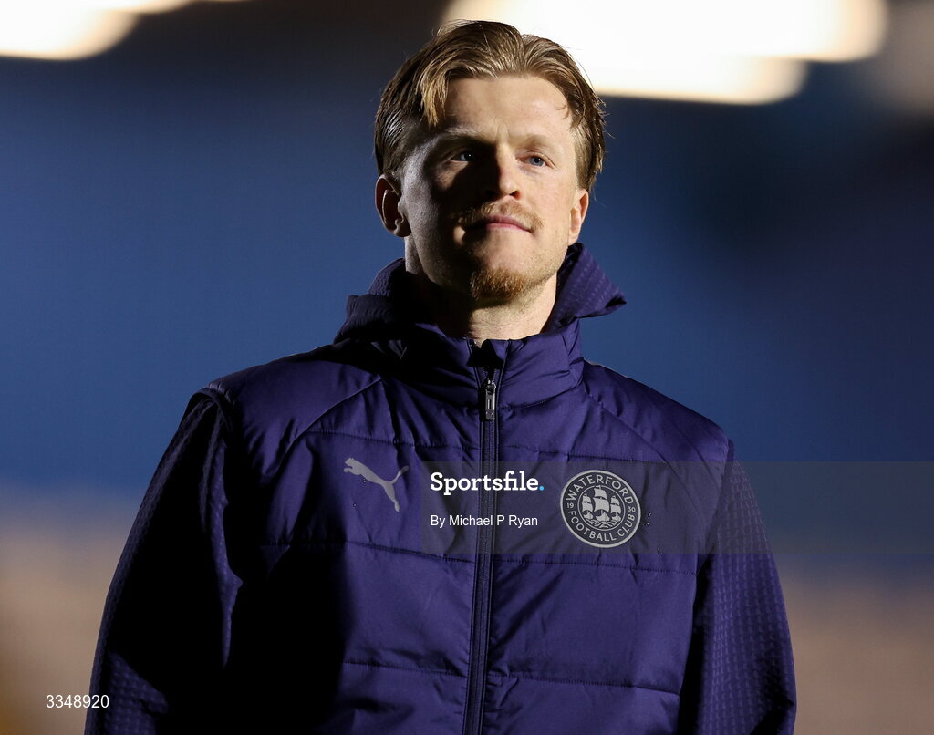 6 February 2026; Jorgen Voilas of Waterford before the SSE Airtricity Men's Premier Division match between Waterford and Shelbourne at the Regional Sports Centre in Waterford. Photo by Michael P Ryan/Sportsfile
