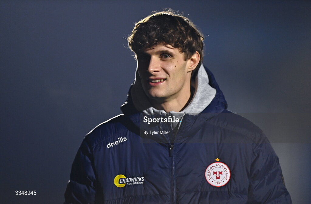 6 February 2026; Will Jarvis of Shelbourne before the SSE Airtricity Men's Premier Division match between Waterford and Shelbourne at the Regional Sports Centre in Waterford. Photo by Tyler Miller/Sportsfile