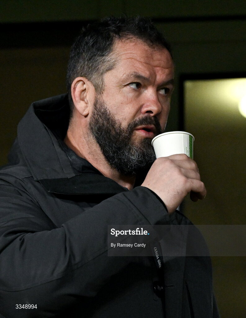 6 February 2026; Ireland head coach Andy Farrell in attendance during the representative fixture rugby union match between Ireland XV and England A at Thomond Park in Limerick. Photo by Ramsey Cardy/Sportsfile