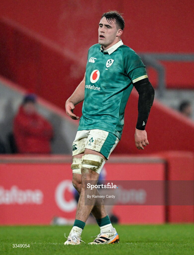 6 February 2026; Brian Gleeson of Ireland XV during the representative fixture rugby union match between Ireland XV and England A at Thomond Park in Limerick. Photo by Ramsey Cardy/Sportsfile