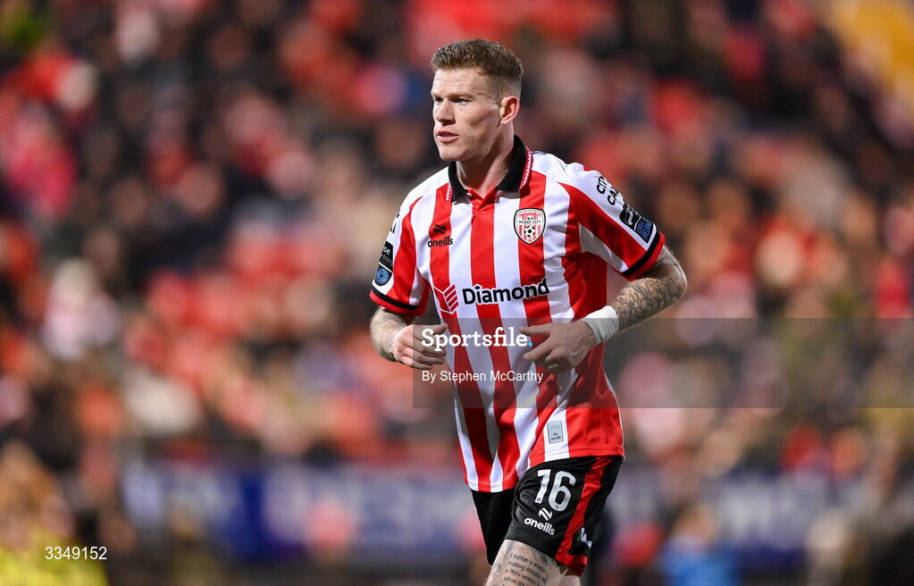 6 February 2026; James McClean of Derry City during the SSE Airtricity Men's Premier Division match between Derry City and Sligo Rovers at The Ryan McBride Brandywell Stadium in Derry. Photo by Stephen McCarthy/Sportsfile