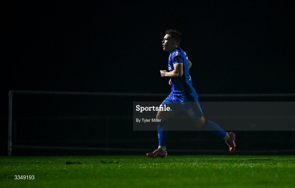 6 February 2026; Tommy Lonergan of Waterford celebrates after scoring his side's first goal during the SSE Airtricity Men's Premier Division match between Waterford and Shelbourne at the Regional Sports Centre in Waterford. Photo by Tyler Miller/Sportsfile