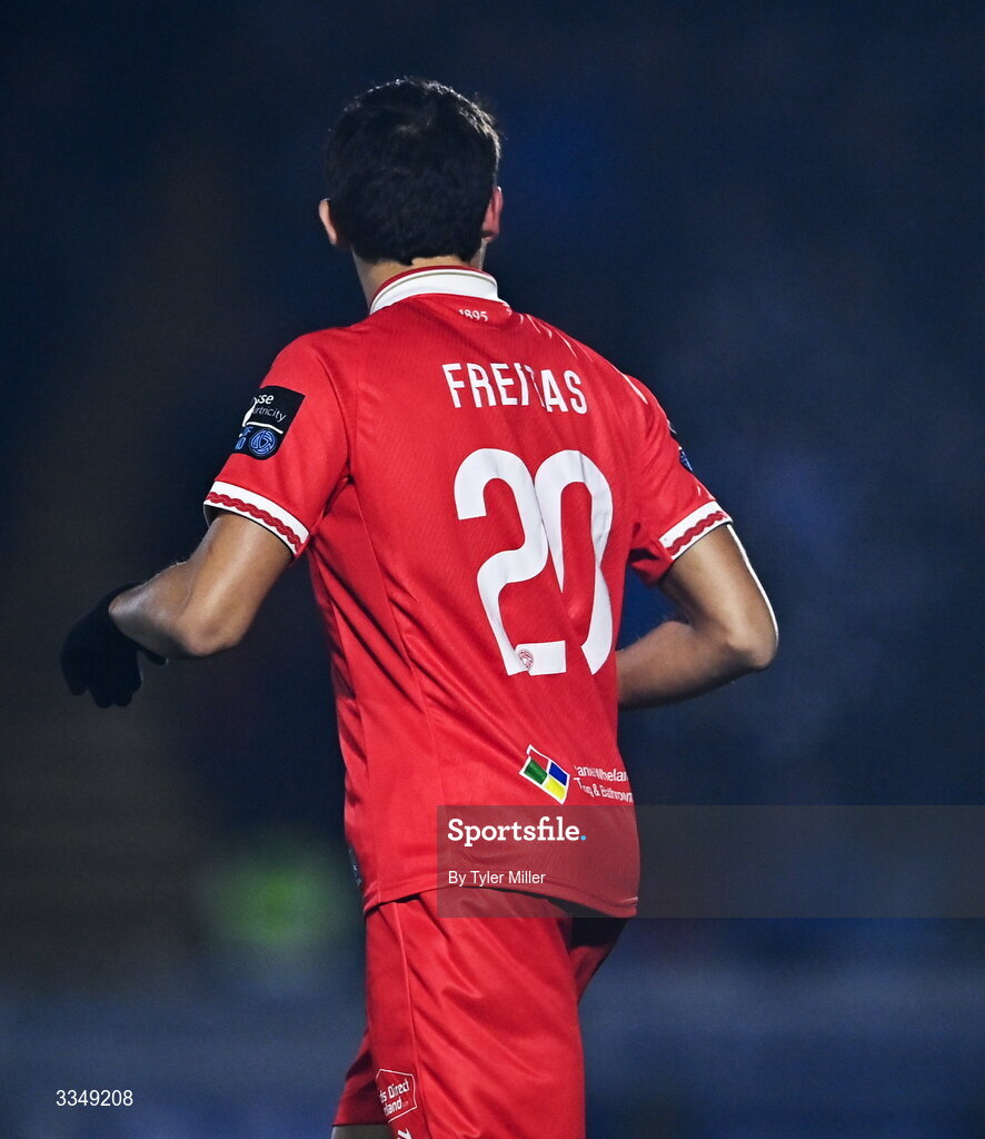 6 February 2026; Rodrigo Freitas of Shelbourne during the SSE Airtricity Men's Premier Division match between Waterford and Shelbourne at the Regional Sports Centre in Waterford. Photo by Tyler Miller/Sportsfile