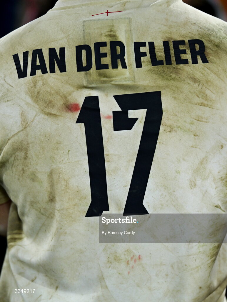 6 February 2026; The jersey of Archie van der Flier of England A after the representative fixture rugby union match between Ireland XV and England A at Thomond Park in Limerick. Photo by Ramsey Cardy/Sportsfile