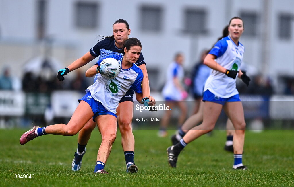 7 February 2026; Áine O'Neill of Waterford in action against Niamh Hetherton of Dublin during the Lidl Ladies National Football League Division 1 Round 3 match between Waterford and Dublin at Dungarvan GAA Club in Dungarvan, Waterford. Photo by Tyler Miller/Sportsfile