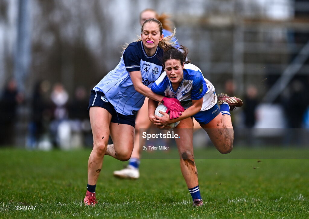 7 February 2026; Áine O'Neill of Waterford in action against Keeva Kenehan of Dublin during the Lidl Ladies National Football League Division 1 Round 3 match between Waterford and Dublin at Dungarvan GAA Club in Dungarvan, Waterford. Photo by Tyler Miller/Sportsfile