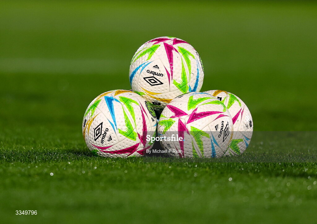 6 February 2026; Footballs on the pitch before the SSE Airtricity Men's Premier Division match between Waterford and Shelbourne at the Regional Sports Centre in Waterford. Photo by Michael P Ryan/Sportsfile
