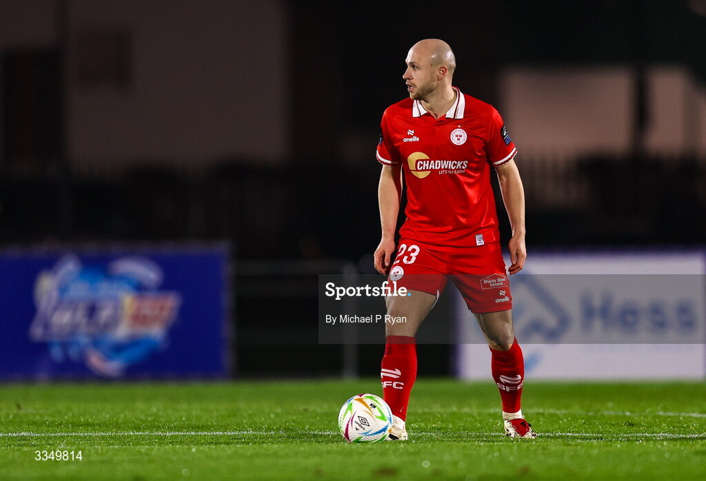 6 February 2026; Kerr McInroy of Shelbourne during the SSE Airtricity Men's Premier Division match between Waterford and Shelbourne at the Regional Sports Centre in Waterford. Photo by Michael P Ryan/Sportsfile
