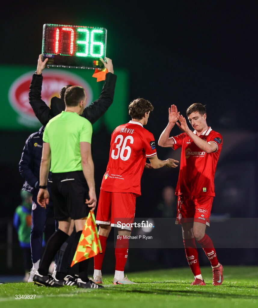 6 February 2026; Will Jarvis of Shelbourne comes onto the pitch during a second half substitution in replace of Daniel Kelly during the SSE Airtricity Men's Premier Division match between Waterford and Shelbourne at the Regional Sports Centre in Waterford. Photo by Michael P Ryan/Sportsfile