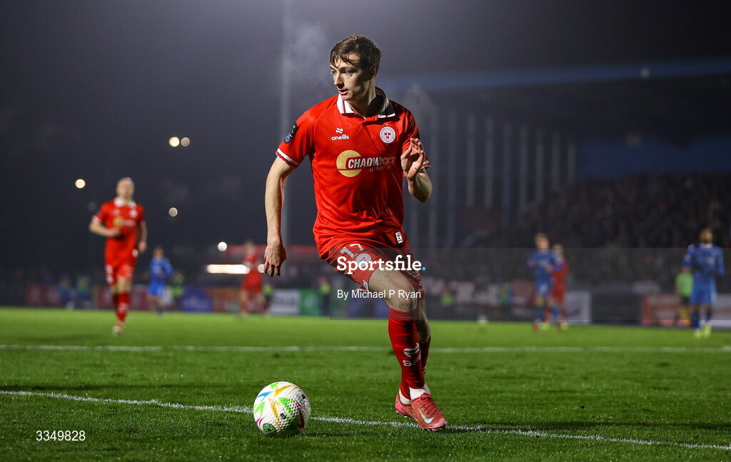6 February 2026; Daniel Kelly of Shelbourne during the SSE Airtricity Men's Premier Division match between Waterford and Shelbourne at the Regional Sports Centre in Waterford. Photo by Michael P Ryan/Sportsfile