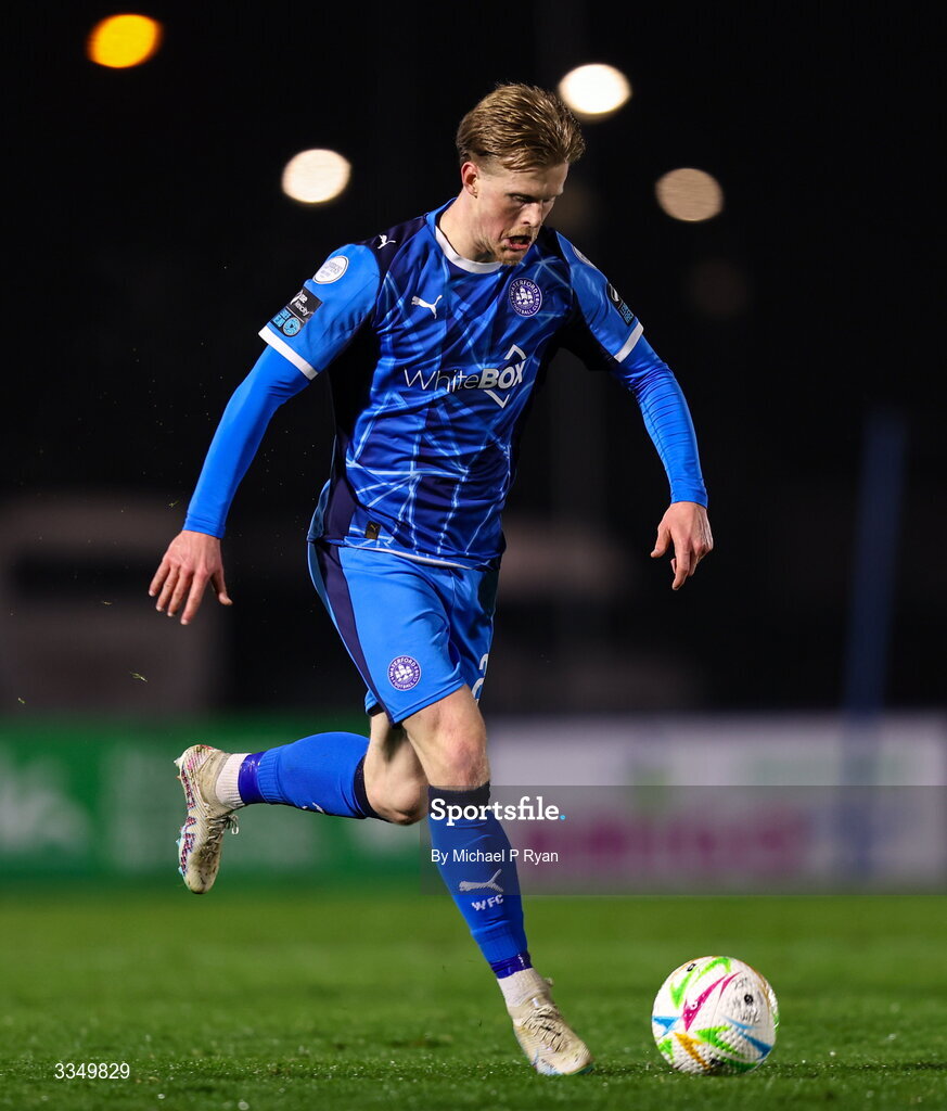6 February 2026; Jorgen Voilas of Waterford during the SSE Airtricity Men's Premier Division match between Waterford and Shelbourne at the Regional Sports Centre in Waterford. Photo by Michael P Ryan/Sportsfile