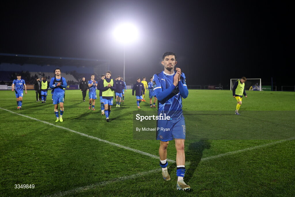 6 February 2026; Luke Heeney of Waterford acknowledges his side's supporters after the SSE Airtricity Men's Premier Division match between Waterford and Shelbourne at the Regional Sports Centre in Waterford. Photo by Michael P Ryan/Sportsfile
