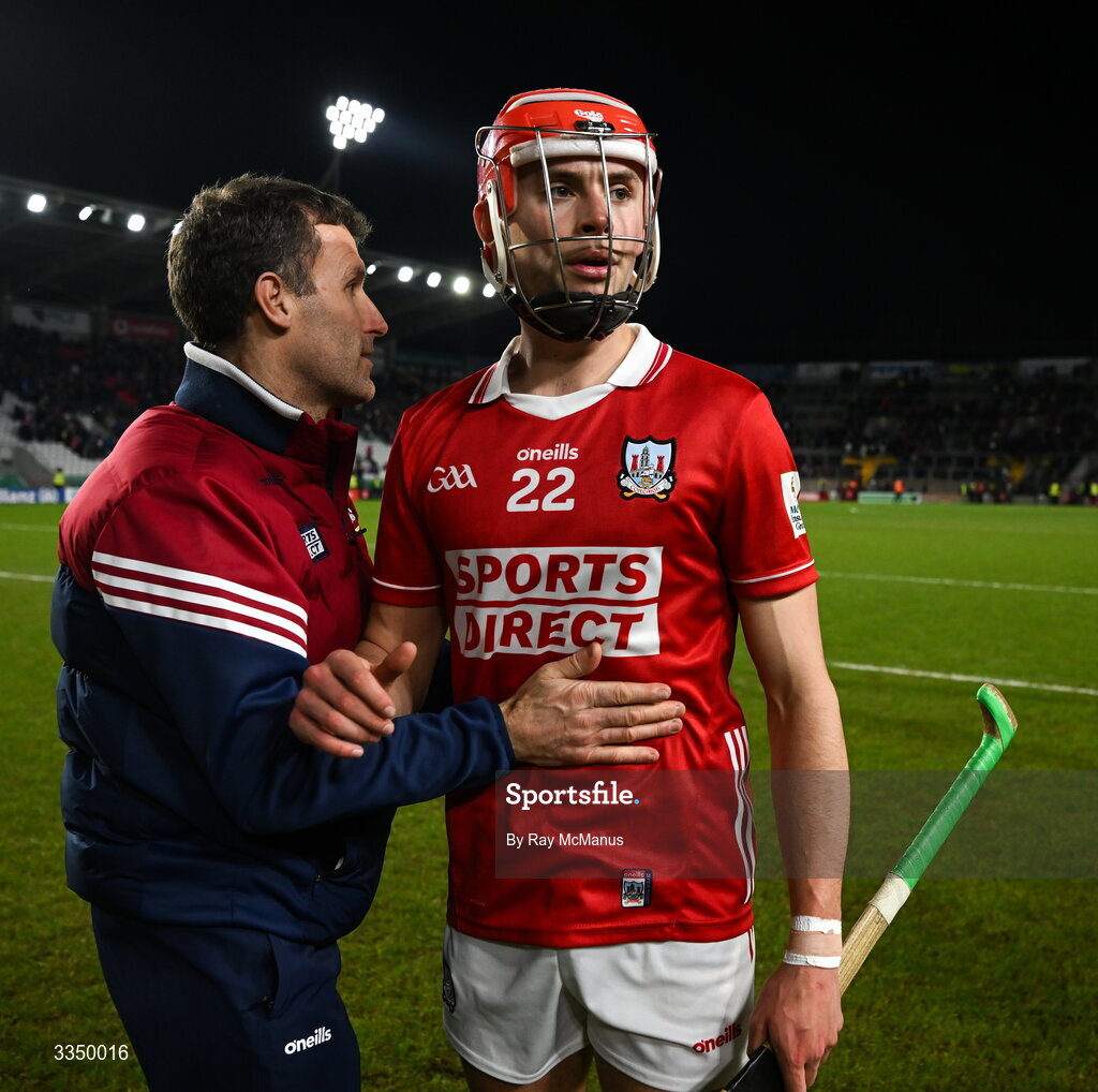 7 February 2026; Cork manager Ben O'Connor with Hugh O'Connor of Cork after the Allianz Hurling League Division 1A match between Cork and Tipperary at SuperValu Páirc Ui Chaoimh in Cork. Photo by Ray McManus/Sportsfile