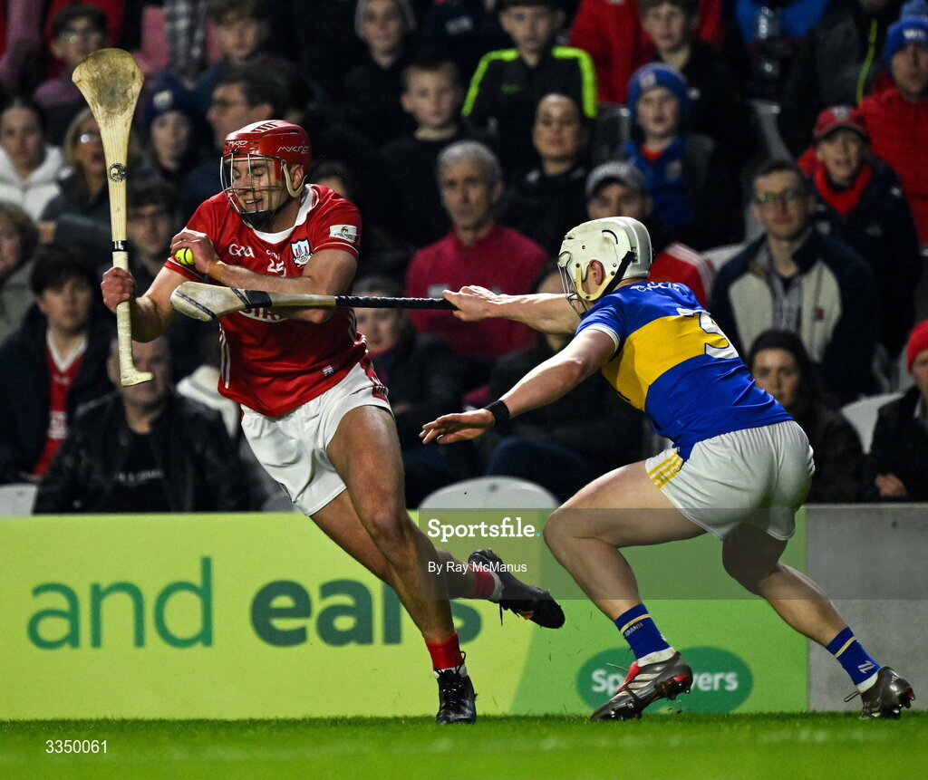 7 February 2026; Brian Hayes of Cork is tackled by Bryan O'Meara of Tipperary during the Allianz Hurling League Division 1A match between Cork and Tipperary at SuperValu Páirc Ui Chaoimh in Cork. Photo by Ray McManus/Sportsfile