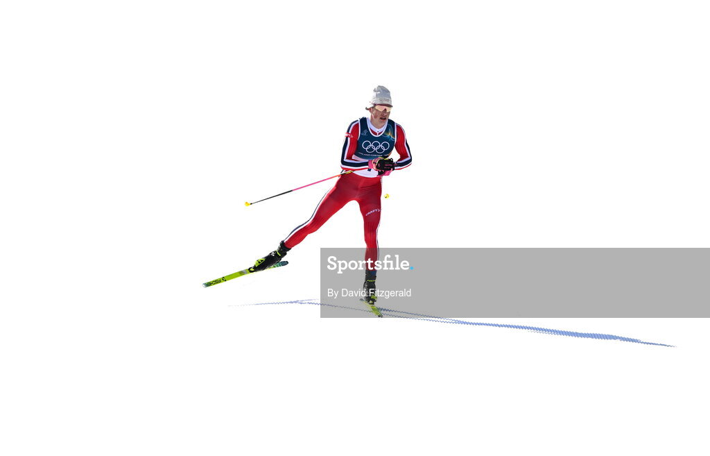 8 February 2026; Johannes Høsflot Klæbo of Team Norway on his way to winning the Men's Cross-Country Skiing 10km+10km Skiathlon Final during day two of the Milano Cortina 2026 Winter Olympics at Tesero Cross-Country Skiing Stadium in Val di Fiemme, Italy. Photo by David Fitzgerald/Sportsfile