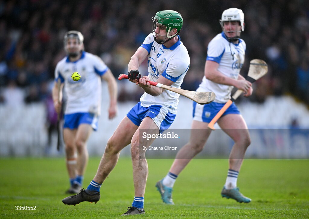 8 February 2026; Michael Kelly of Waterford has a shot on goal during the Allianz Hurling League Division 1A match between Waterford and Offaly at Azzuri Walsh Park in Waterford. Photo by Shauna Clinton/Sportsfile