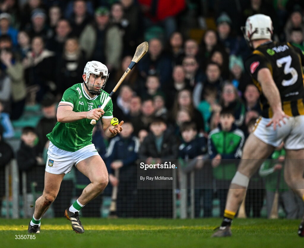 8 February 2026; Aaron Gillane of Limerick on his way to score his side's first goal, in the 57th minute, during the Allianz Hurling League Division 1A match between Limerick and Kilkenny at TUS Gaelic Grounds in Limerick. Photo by Ray McManus/Sportsfile