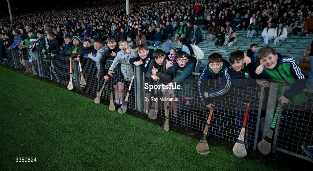 8 February 2026; Young Limerick supporters await the end of the game so they can get autographs from the Limerick players during the Allianz Hurling League Division 1A match between Limerick and Kilkenny at TUS Gaelic Grounds in Limerick. Photo by Ray McManus/Sportsfile