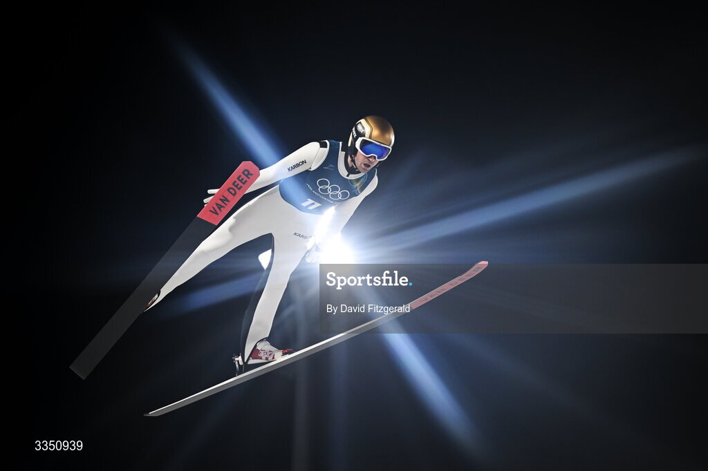 8 February 2026; Mackenzie Boyd-Clowes of Team Canada in action in the Men's Ski Jumping normal hill training during day two of the Milano Cortina 2026 Winter Olympics at Predazzo Ski Jumping Stadium in Predazzo, Italy. Photo by David Fitzgerald/Sportsfile
