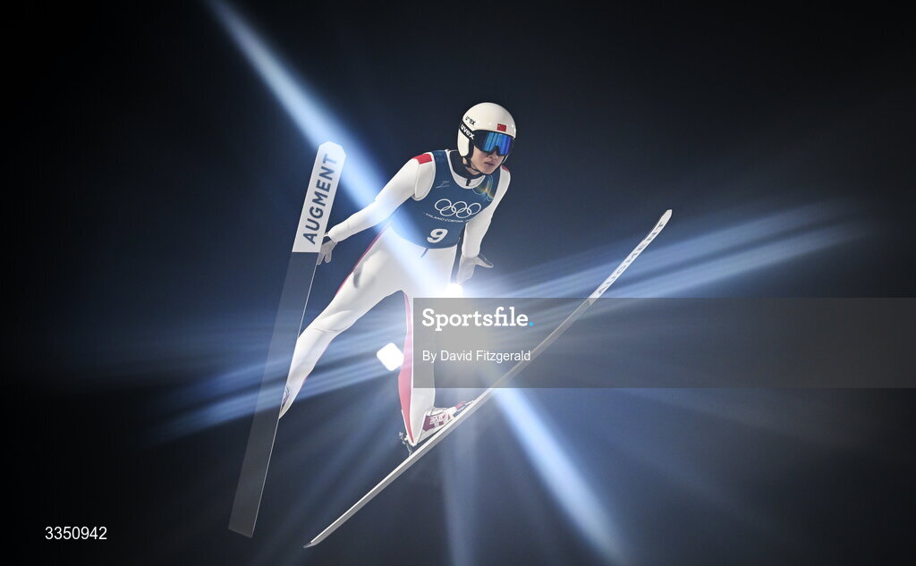 8 February 2026; Qiwu Song of Team China in action in the Men's Ski Jumping normal hill training during day two of the Milano Cortina 2026 Winter Olympics at Predazzo Ski Jumping Stadium in Predazzo, Italy. Photo by David Fitzgerald/Sportsfile