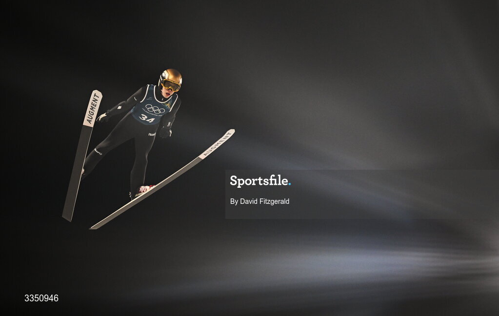 8 February 2026; Valentin Foubert of Team France in action in the Men's Ski Jumping normal hill training during day two of the Milano Cortina 2026 Winter Olympics at Predazzo Ski Jumping Stadium in Predazzo, Italy. Photo by David Fitzgerald/Sportsfile