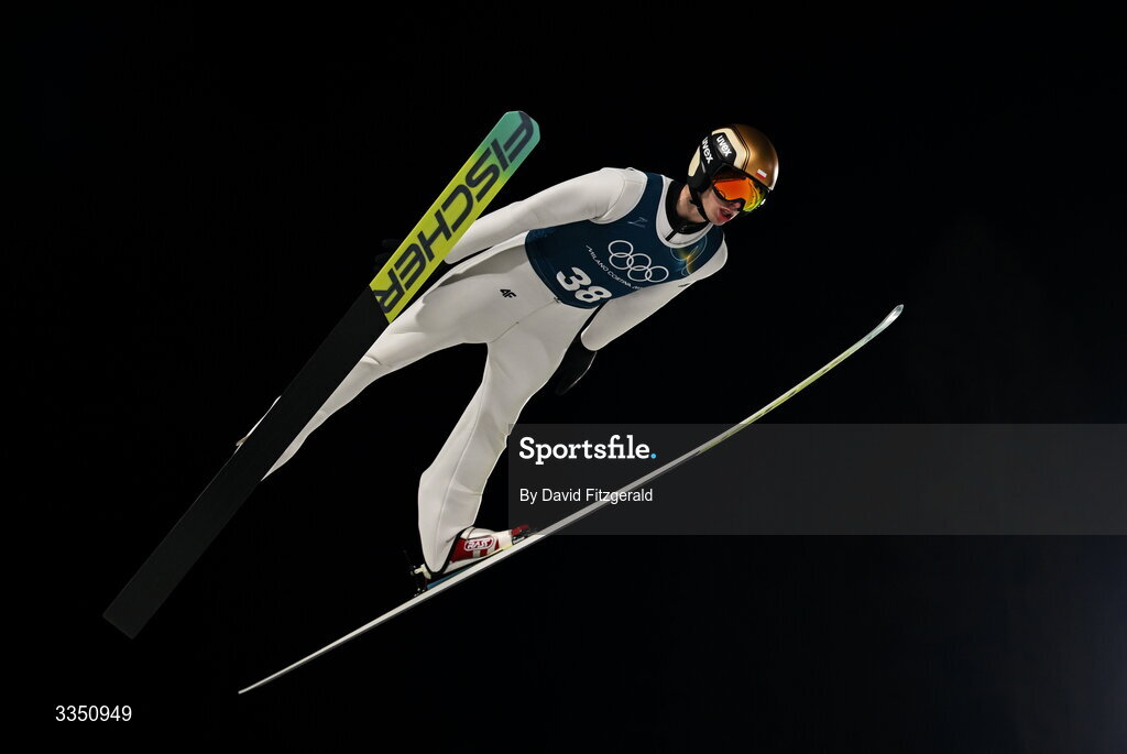 8 February 2026; Kacper Tomasiak of Team Poland in action in the Men's Ski Jumping normal hill training during day two of the Milano Cortina 2026 Winter Olympics at Predazzo Ski Jumping Stadium in Predazzo, Italy. Photo by David Fitzgerald/Sportsfile