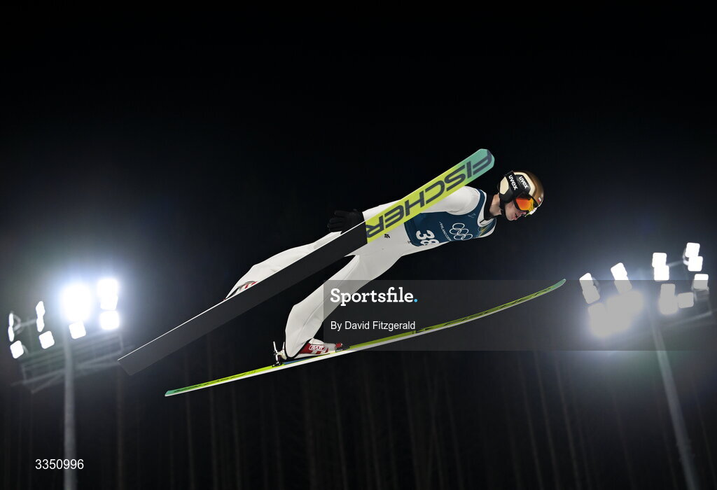 8 February 2026; Kacper Tomasiak of Team Poland in action in the Men's Ski Jumping normal hill training during day two of the Milano Cortina 2026 Winter Olympics at Predazzo Ski Jumping Stadium in Predazzo, Italy. Photo by David Fitzgerald/Sportsfile