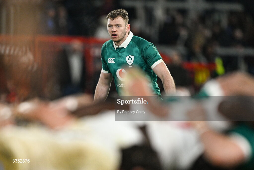 6 February 2026; Cathal Forde of Ireland XV during the representative fixture rugby union match between Ireland XV and England A at Thomond Park in Limerick. Photo by Ramsey Cardy/Sportsfile