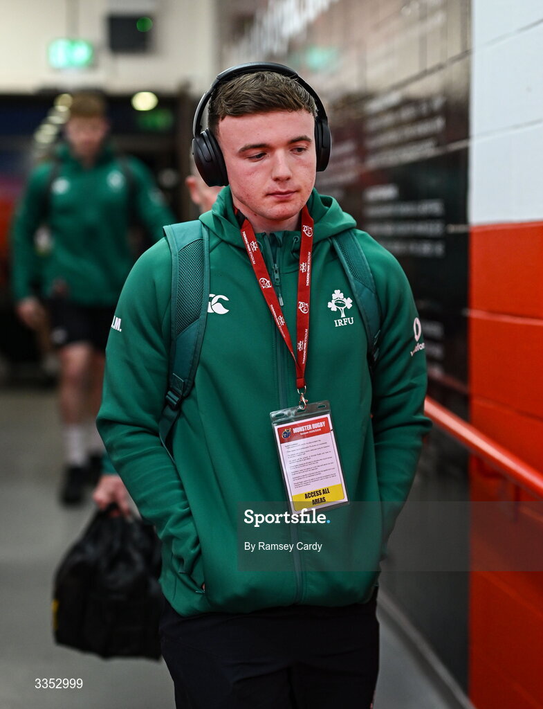 6 February 2026; Jack Murphy of Ireland XV before the representative fixture rugby union match between Ireland XV and England A at Thomond Park in Limerick. Photo by Ramsey Cardy/Sportsfile