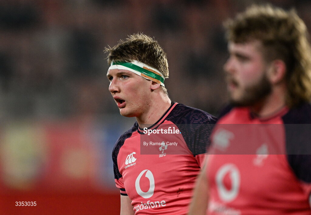 6 February 2026; Charlie Irvine of Ireland XV before the representative fixture rugby union match between Ireland XV and England A at Thomond Park in Limerick. Photo by Ramsey Cardy/Sportsfile